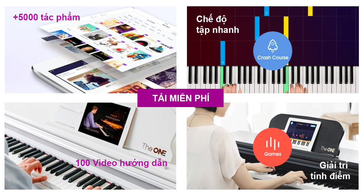 - Ứng dụng độc quyền (tải miễn phí) của The ONE Piano Sparring & The ONE Smart Piano